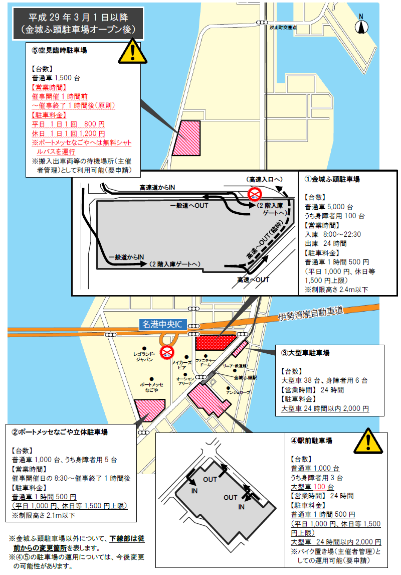 レゴランド利用者は、金城ふ頭駐車場か駅前駐車場を選択
